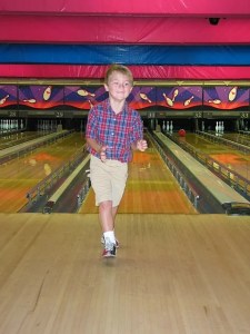 Here is Avery another time bowling and despite having pins left I am sure in his head he’s saying, “Take that!”
